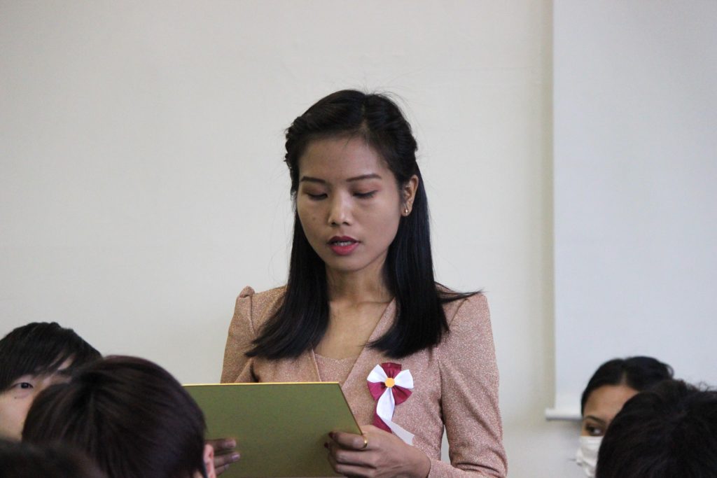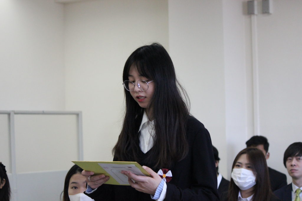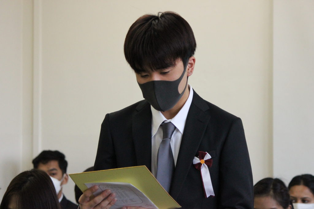 楊家旗さんは在校生代表として、新入生に言葉を送りました。