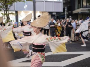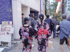 穿着浴衣和做了简单的发型参加了在新宿区神乐坂1丁目~6丁目举行的神乐坂祭。