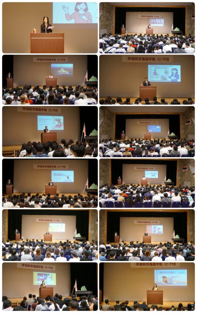 2025年9月5日(周五),早稻田京福语学院在箪笥ホール成功举办了本年度演讲大赛。来自各班的代表围绕多元主题展开精彩演讲与现场答辩,展现了出色的语言表达与思辨能力。