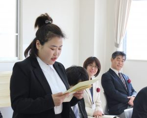 在学校里举办了1月生的入学式,迎来了3名留学生。
