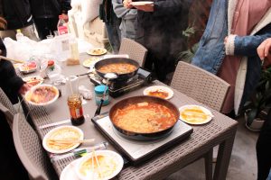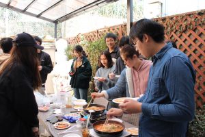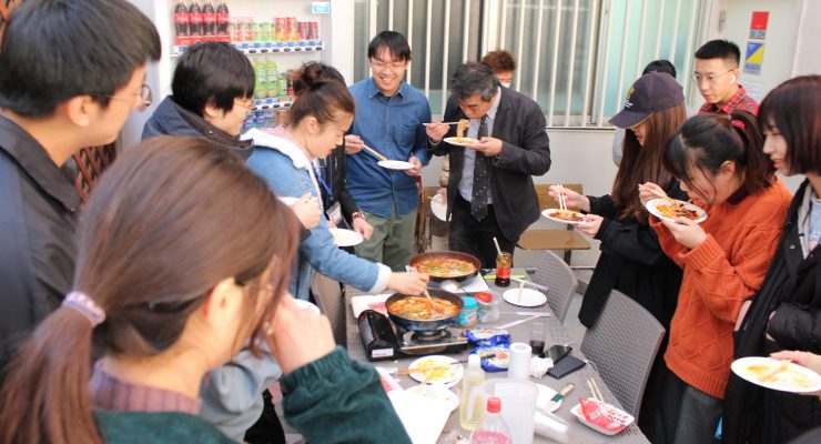 这天,学生们在校园的小院里着手准备火锅宴会。火锅在中国是有名的料理。火锅料理不仅限于中国大陆,新加坡,马来西亚等亚洲国家也是经常食用,辣味是其特点。