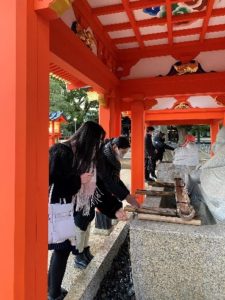今年第一天上课,我们组织班级同学们都到早稻田大学附近的“穴八幡宮”祈福新年。