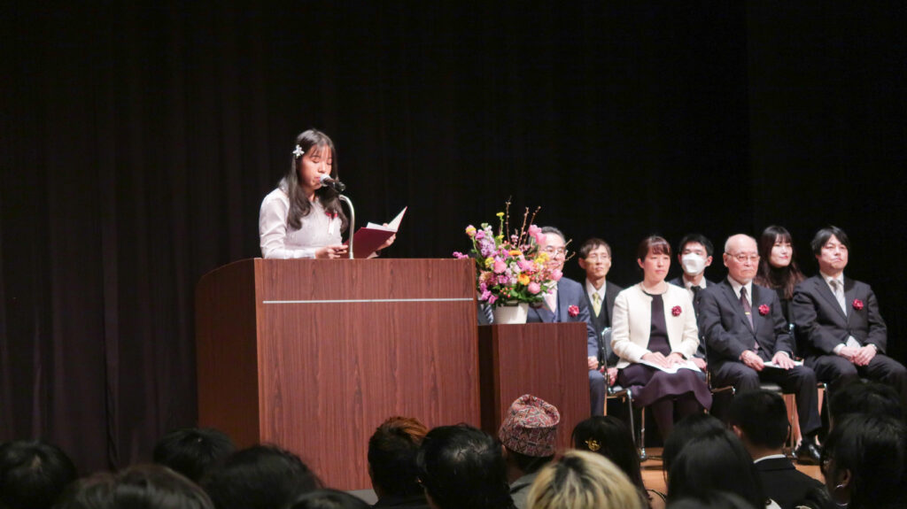 The student representative gave a speech on behalf of the current students,