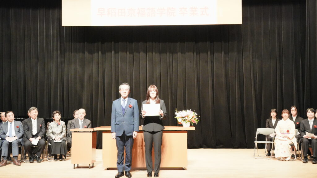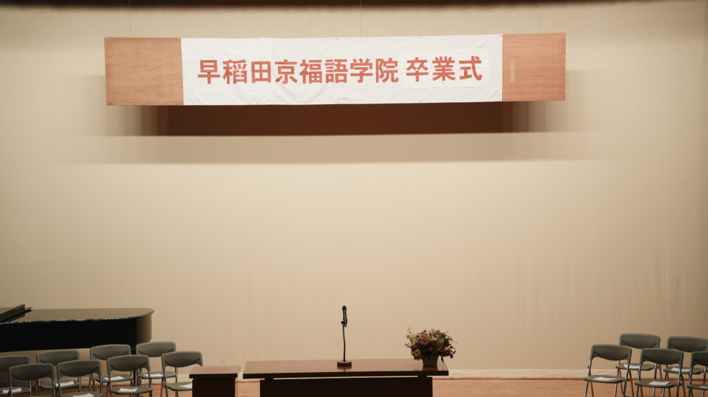 On March 9, 2026, Waseda Keifuku Language Academy held its graduation ceremony with graduates, faculty members, and representatives of current students in attendance.